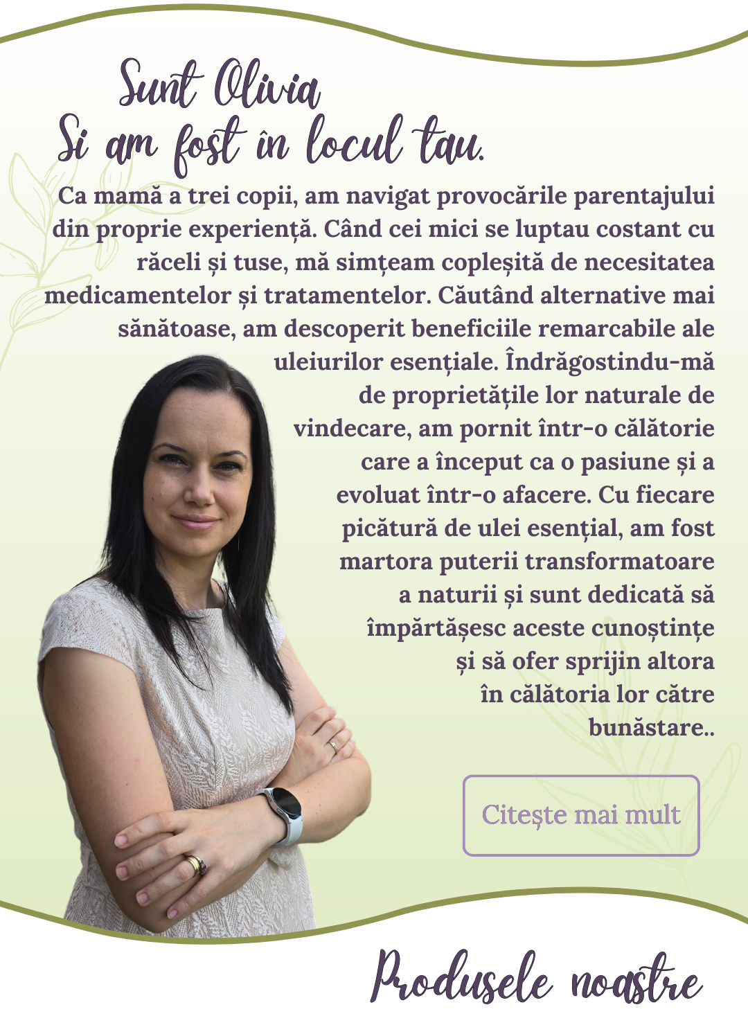 Dar beneficiile uleiurilor esentiale si a produselor naturale se extind mult dincolo de ingrijirea pielii. Aceste plante puternice sunt apreciate de secole pentru proprietatile lor terapeutice, promovand relaxarea, reducand stresul si ridicand spiritul. Fie ca sunt difuzate in aer, adaugate in apa de baie sau aplicate local, uleiurile esentiale ofera o abordare holistica a starii de bine care ingrijeste mintea, corpul si sufletul.